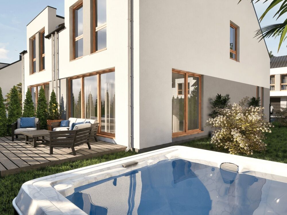 Na sprzedaż nowoczesne energooszczędne domy w zabudowie bliźniaczej o powierzchni 130 m2 każdy, usytuowane na działkach o różnych wielkościach: od 245m2 do 285 m2.